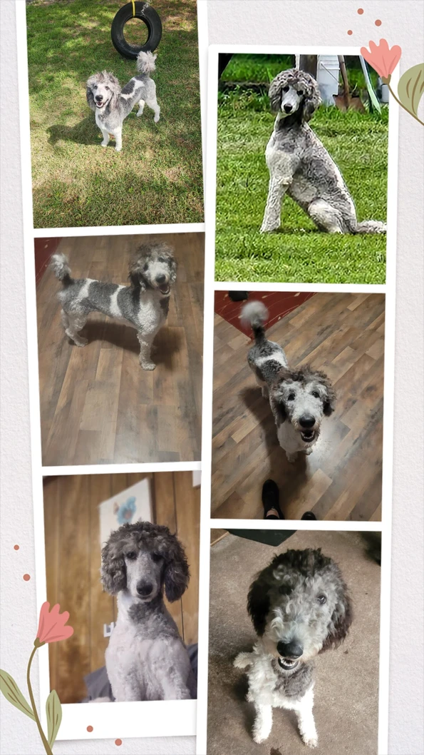 Our Loving, Hilarious Mama Lily is one of the most beautiful silver standard Poodles we’ve ever laid eyes on—and we’re not just saying that because she’s ours! With her stunning silver coat and soulful eyes, Lily is the heart of our Poodle family. We brought Lily home when she was just 7 months old, and she’s now a playful, obedient, and affectionate 3-year-old.